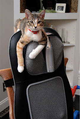 We had a great time taking care of Samantha while April was out of town. She was bound and determined to figure out how to work the massage chair.